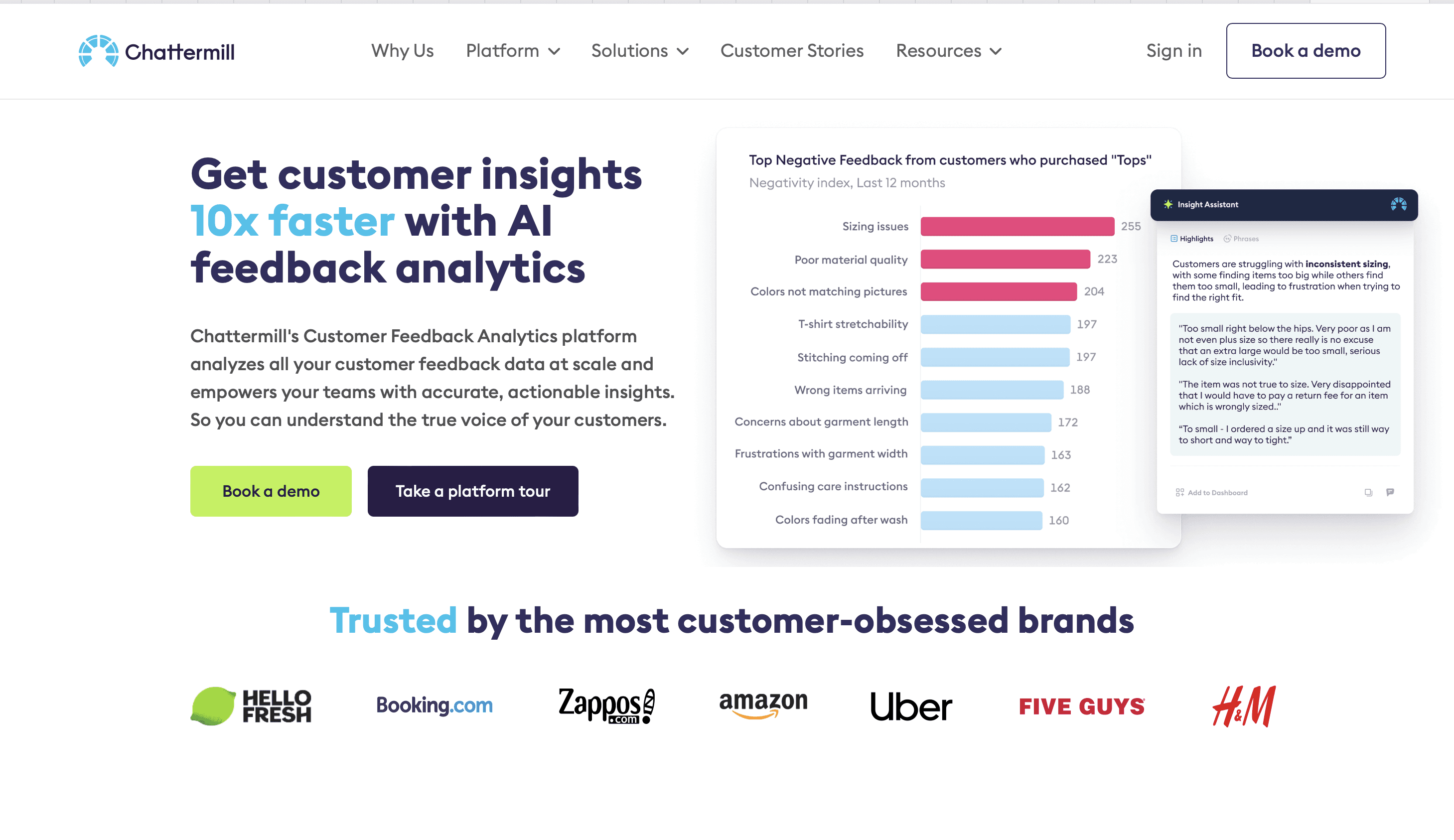 Uses advanced NLP to group similar feedback and extract major themes, helping businesses address major user concerns.