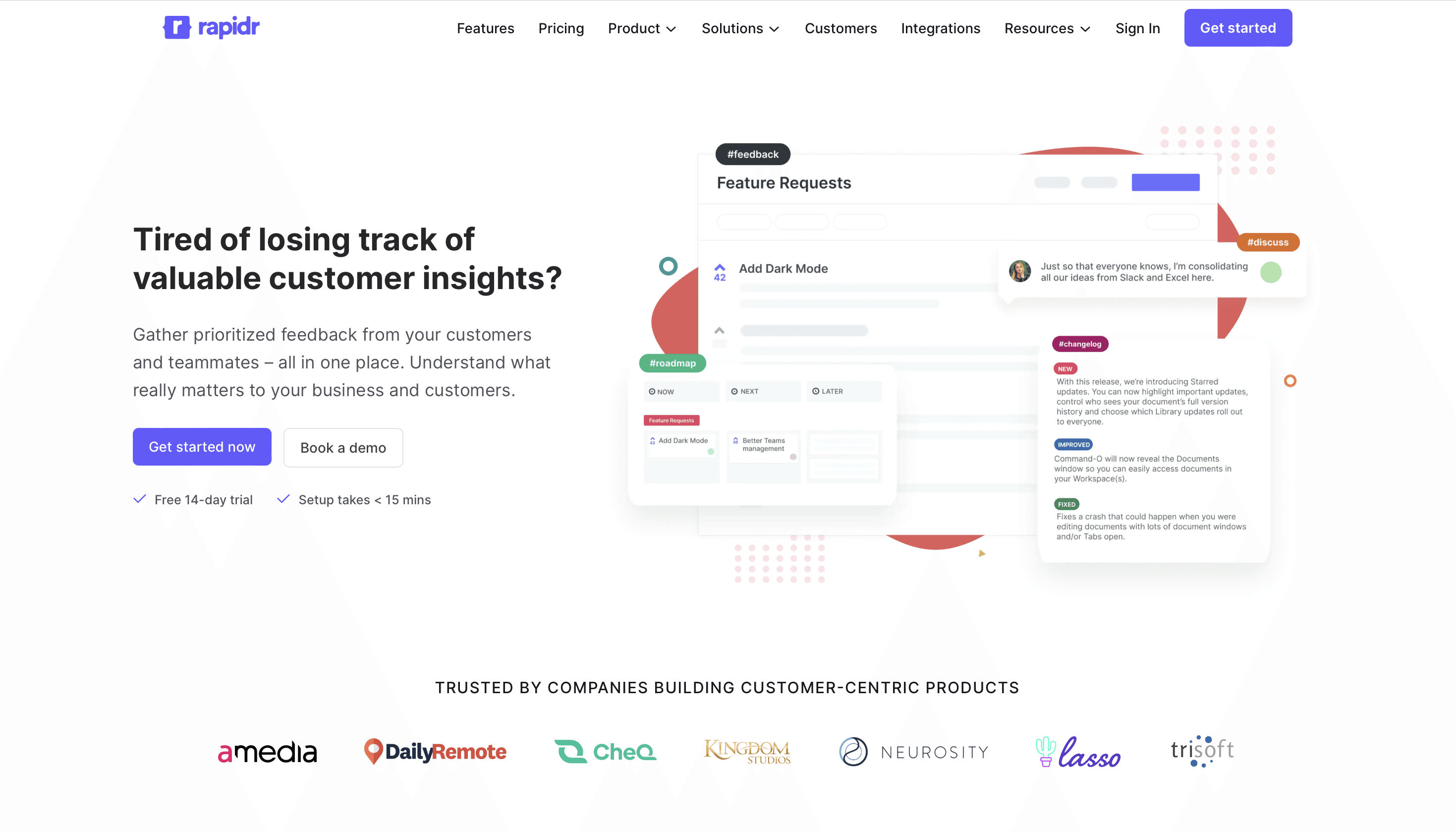 Rapidr helps you build public roadmaps, collect upvotes and publish release notes. Just upvotes are not enough to understand user needs. Olvy brings keeps track of all user feedback you can make decisions on pain-points and not popularity.