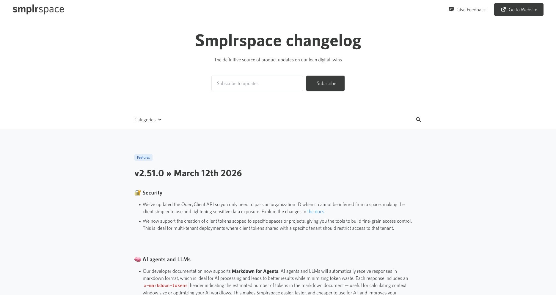 Categorize your releases into projects and categories to organize your changelog